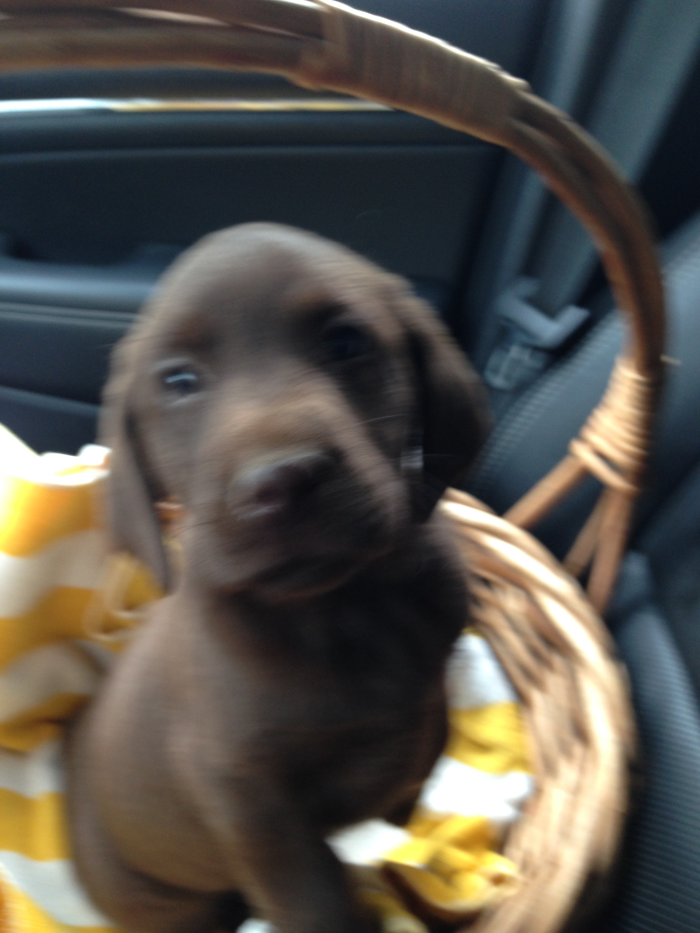 We picked up our new Wallace at 7 weeks old on January 2, 2014 from Southland Kennel in Stafford, Virginia. After losing our almost 14 year old chocolate labrador in September, the sentiment was bittersweet to have a new baby in the house. The three months without a dog were quiet, wanting, and honestly, lacking the chaos that a good family life needs. Dogs make you love, they make you talk to each other, they help teach lessons and they divert you from the realities of work, finances and down-in-the-dumps self focus.  You still have to pay the bills and go to work, but, much like the births of both my children, puppies help to rebalance the priorities.